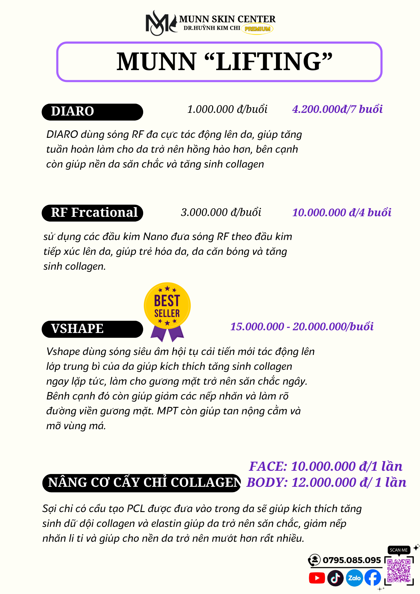 MUNN “LIFTING”TIN LIÊN QUANDeep Fractional – “Phép màu” tái sinh làn da tại…MUNNSKINLAB - LIỆU TRÌNH NÂNG CƠ, TRẺ HÓA DAMỤNN SKINLAB: ĐÁNH BAY NÁM, TÀN NHANG, SẮC TỐ DASẹo lồi – Khi vết thương nhỏ để lại nỗi lo dài lâuMUNN ACNE LINE - Liệu trình kinh điển Munn skinlab…HIFU Ultraformer III - Công nghệ trẻ hóa làn da đỉnh cao MUNN “BAP”MUNN PREMIUM