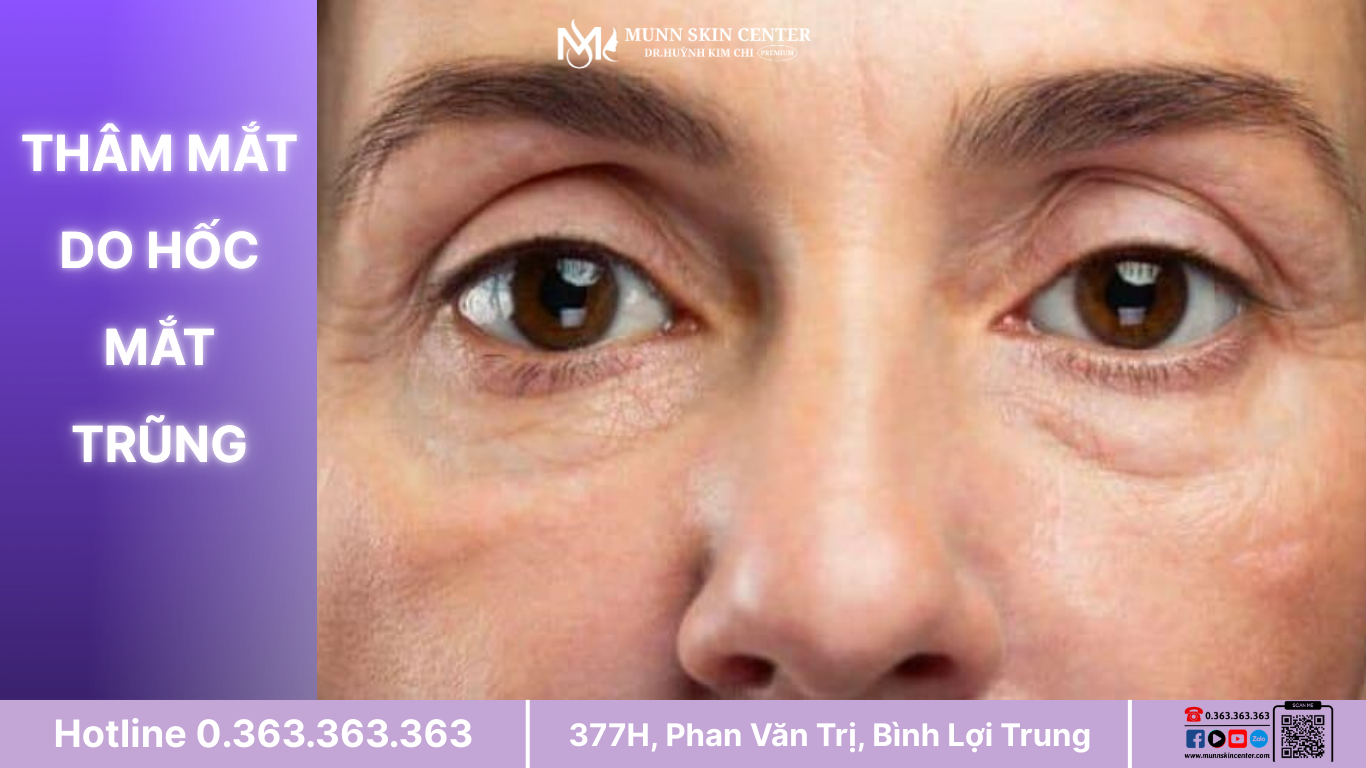 Hốc mắt trũng tạo bóng đổ khiến vùng mắt luôn trông tối dù màu da không thay đổi. Nhiều người nhầm lẫn đây là thâm mắt thông thường. Trường hợp này cần đánh giá kỹ cấu trúc khuôn mặt trước khi điều trị. Mỹ phẩm gần như không mang lại hiệu quả rõ rệt.
